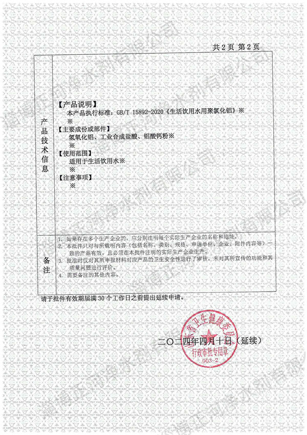應用領域:該產品專用于生活飲用水的凈化處理,具有凈化效率高、沉降速度快、鋁殘留率低的特性。